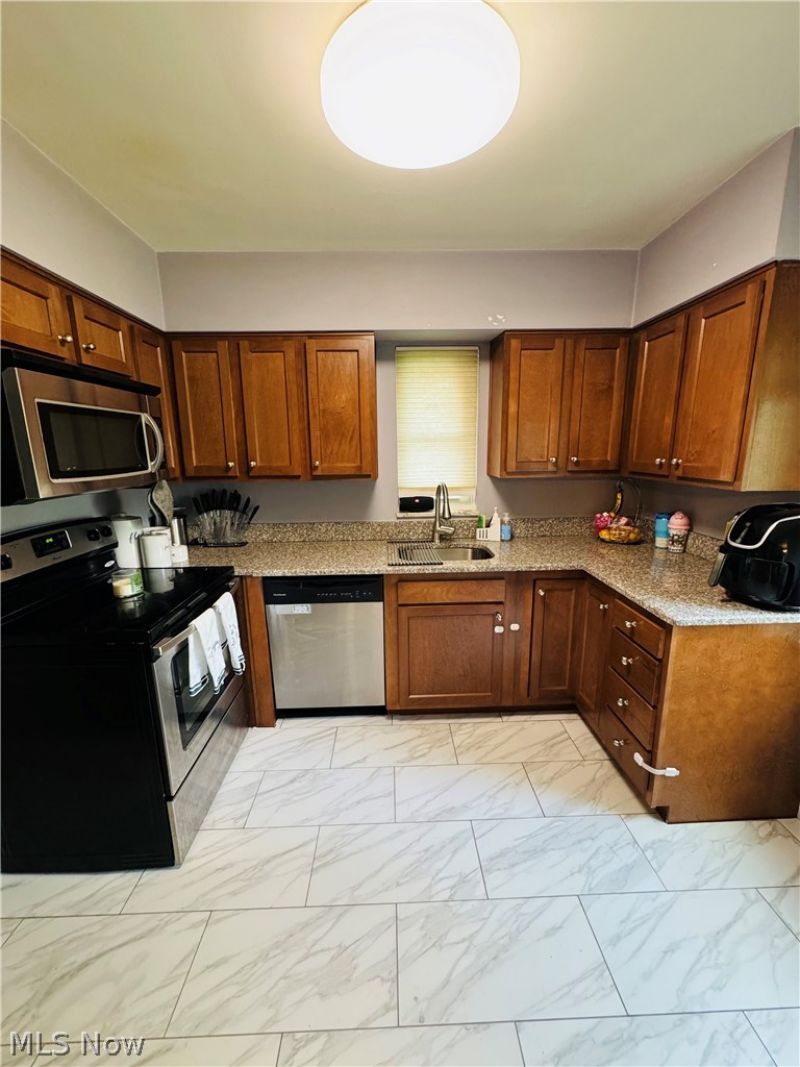 Beautiful brick colonial with plenty charm. Great location and excellent curb appeal. Boasting a well manicured, lushed green front lawn. Enter through the painted front door to a custom tiled foyer. Beautiful original hardwood floors in excellent condition. The hardwood floors run throughout the entire home. The living room includes a fireplace and custom shelving perfect for decor. Also, the living room is well lit with recessed lighting, offering a modern touch. Enjoy scenic views from your large bay window. This home includes all newer windows. The modern kitchen comes equipped with all stainless steel appliances, and the appliances will be included with the sale of the home (refrigerator, stove, dishwasher, microwave). The stylish kitchen also offers modern cabinets and quartz countertops. Three nice sized bedrooms with beautiful original hardwood floors. However, two bedrooms are exceptionally large and spacious. Nice size closets in each bedroom, and one bedroom offer two closets. Also, a small balcony is adjacent to a bedroom. Standard full bathroom with vanity and custom tiled floor. The basement is partially finished with carpet and includes a half bath. Great space for a playroom. Professionally installed GlassBlock windows offering additional privacy and security. Updated electrical panel. Newer hot water tank, furnace, and central air (all under 10 years old). Furnace and central air was installed and maintained by New Image Heating. Also, there's a sunroom that can use some attention. Washer and dryer included too! The entire home has been well maintained, and offers plenty of living space under one roof. Close to playgrounds, schools, multiple grocery stores, Target, Walmart, Beachwood Place Mall, metro parks, restaurants, freeways, and more. A true gem at a great price. Move-in ready. Schedule a tour now.